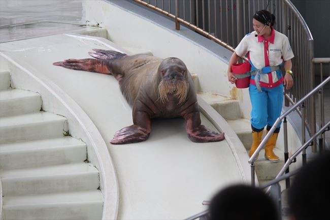 規模としては小規模なのかもしれませんかなり年季が入った感じで自分が子供頃(20年近く前)に家族旅行で行った時の雰囲気を思い出しますショースペースの狭さが半端ではなく最後列に座っていた自分にもかかりましたスタッフさんの手作り感あふれるクイズとか涙ぐましい感じです